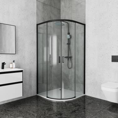 Душевой уголок Ambassador Queen 11011201Black 90x90 предусматривает универсальную установку. Форма у него полукруглая. Такой вариант размещения позволяет эффективно использовать площадь помещения. В конструкции изделия шириной 900 мм и глубиной 900 мм используется прозрачное стекло толщиной 6 мм. Оно придает душевому уголку выразительность. Стекло закаленное, а поэтому травмобезопасное.